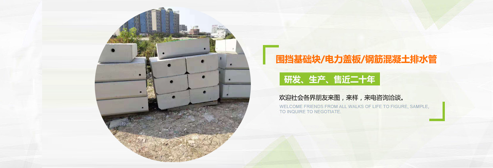 深圳富華環(huán)保建筑材料有限公司(簡稱富華環(huán)保建筑材料)是一家專業(yè)研發(fā)生產(chǎn)與銷售水泥預制品的公司,從2001年開始至今,主要生產(chǎn)的產(chǎn)品有:圍檔基礎塊、環(huán)保透水磚、河道護坡磚、停車場植草磚、電纜溝蓋板、預制井筒井座、立道牙、平道牙、鋼筋混凝土排水管、頂管、排煙道管、隔離敦、河道仿木欄桿等水泥預制構件, 可針對每一個客戶的不同條件和要求,設計與生產(chǎn)各種水泥預制構件。